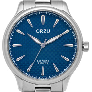 Refined and modern, this ORZU men’s watch features a striking blue round dial paired with a sleek silver stainless steel bracelet. Crafted for lasting comfort and superior quality, it blends timeless elegance with everyday versatility—making it a perfect companion for both formal occasions and daily wear.