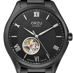 Bold and contemporary, the ORZU men's watch features a striking black stainless steel bracelet paired with a sleek black round dial. Designed for lasting comfort and refined style, this timepiece reflects ORZU’s commitment to superior quality and modern craftsmanship—perfect for the gentleman who values precision and presence.