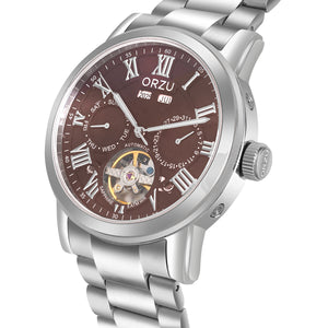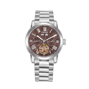 ORZU Automatic Brown Dial Men's Watch - MT60022 | Stainless Steel Case & Solid Band | Sapphire Glass | Stainless Steel Band Watch for Men