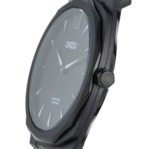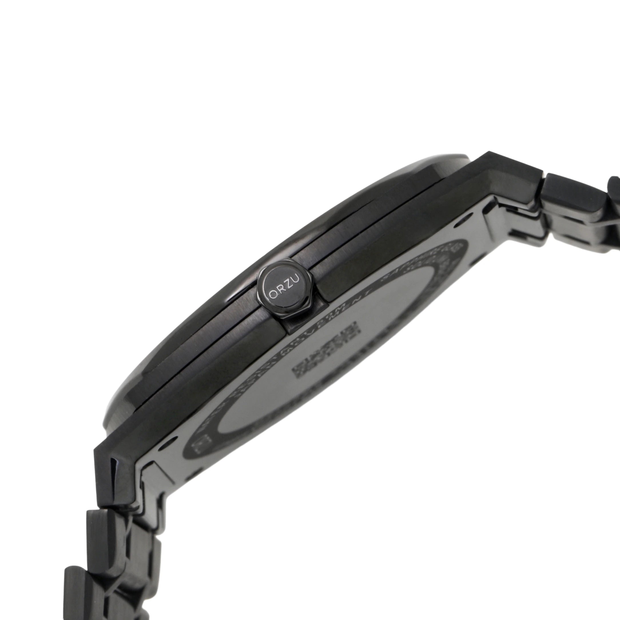 Sleek and commanding, this ORZU men’s watch features a refined black round dial paired with a robust black stainless steel bracelet. Designed for enduring comfort and crafted with exceptional quality, it delivers a confident blend of modern style and timeless elegance—perfect for both everyday wear and formal occasions.
