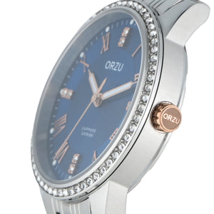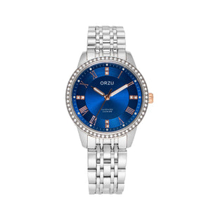 Graceful and modern, this ORZU women’s watch features a captivating blue round dial paired with a polished silver stainless steel bracelet. Crafted with premium materials for lasting comfort and exceptional quality, it offers timeless elegance and versatile style—perfect for both everyday wear and refined occasions.