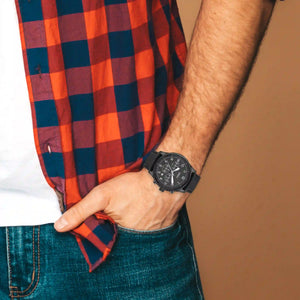 ORZU Chronograph Black Dial Men's Watch - MC50018 | Stainless Steel Case & Solid Band | Sapphire Glass | Black Band Watch for Men