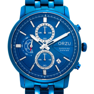 Sleek and modern, this ORZU men’s watch features a vibrant blue round dial paired with a polished blue stainless steel bracelet. Designed for lasting comfort and crafted with premium materials, it offers exceptional quality and refined style—perfect for elevating both everyday looks and formal attire.