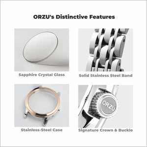 Sophisticated and bold, this ORZU men’s watch features a sleek black round dial paired with a durable black stainless steel bracelet. Designed for lasting comfort and crafted with premium materials, it offers exceptional quality and timeless style—perfect for elevating both everyday wear and formal looks.