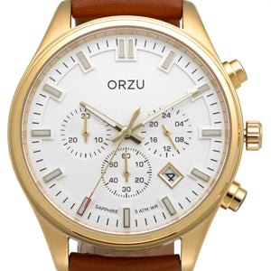 ORZU Chronograph White Dial Men's Watch - MC50057 | Stainless Steel Case & Solid Band | Sapphire Glass | Brown band Watch for Men