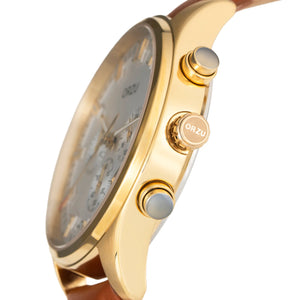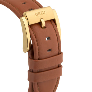 Classic and refined, this ORZU men’s watch features a crisp white round dial paired with a supple brown leather strap. Designed for enduring comfort and crafted with premium materials, it offers exceptional quality and timeless style—ideal for elevating everyday looks or complementing formal attire with effortless elegance.