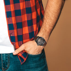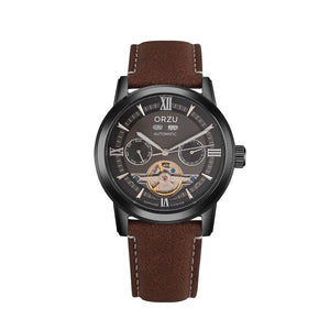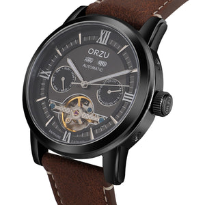 Classic yet contemporary, the ORZU men's watch features a rich brown leather strap and a bold black round dial. Designed for lasting comfort and refined style, this elegant timepiece reflects ORZU’s commitment to superior quality and craftsmanship—ideal for the gentleman who values understated sophistication and precision.