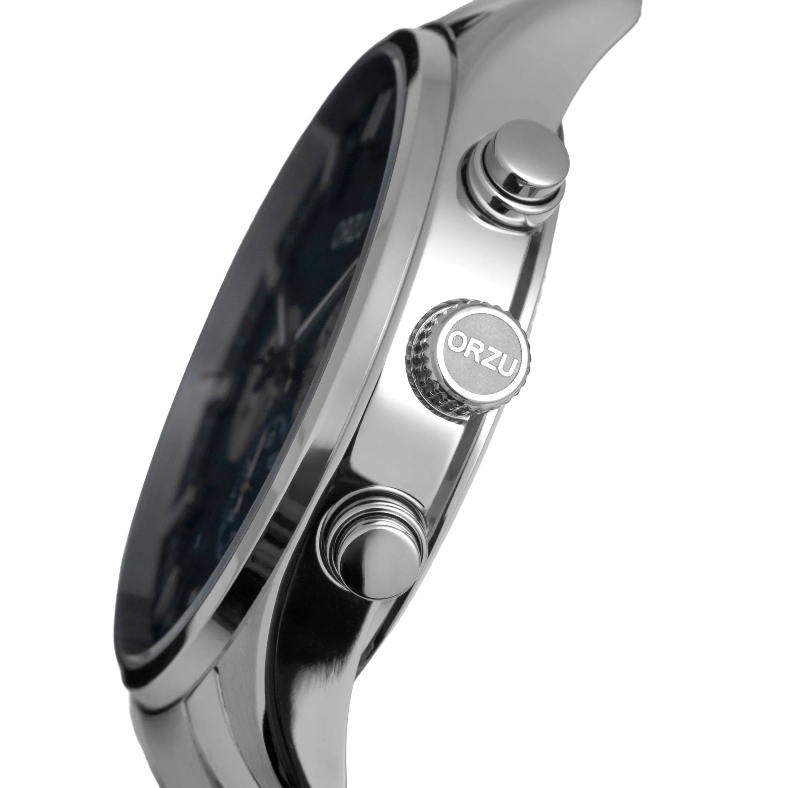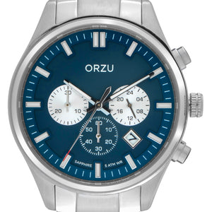 Striking and refined, this ORZU men’s watch features a bold blue round dial paired with a polished silver stainless steel bracelet. Crafted with premium materials for lasting comfort and durability, it blends timeless style with modern sophistication—an ideal choice for both everyday wear and formal occasions.