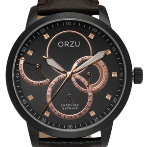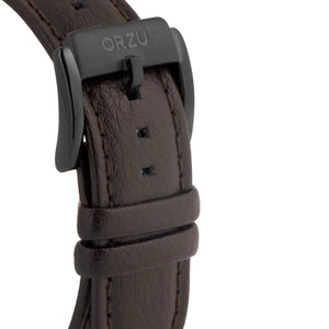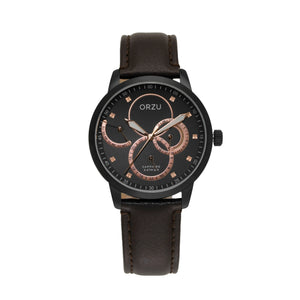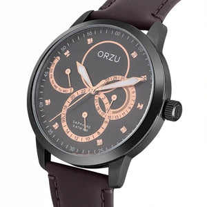 Sophisticated and sleek, this ORZU men’s watch features a bold black round dial paired with a premium brown leather strap. Designed for lasting comfort and crafted with high-quality materials, it offers timeless style and refined elegance—perfect for enhancing both everyday looks and formal attire.