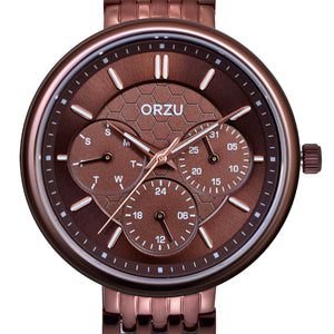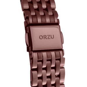 Warm and sophisticated, the ORZU women's watch features a rose gold stainless steel bracelet paired with a matching brown round dial. Crafted for enduring comfort and timeless elegance, this refined timepiece reflects ORZU’s commitment to superior quality—perfect for the woman who values modern charm with a graceful, polished finish.