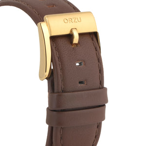 Refined and timeless, this ORZU men’s watch features a sleek white round dial paired with a supple brown leather strap. Crafted with premium materials for lasting comfort and durability, it blends classic style with modern sophistication—an ideal accessory for both everyday wear and formal occasions.