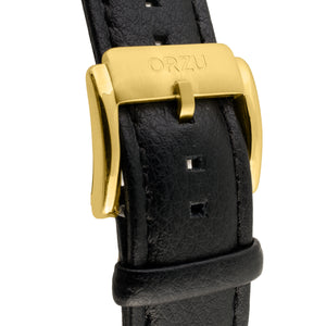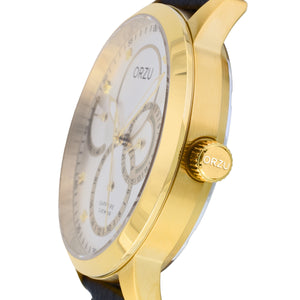 Timeless and refined, the ORZU men's watch features a black leather strap paired with a crisp silver round dial. Crafted for enduring comfort and understated elegance, this sophisticated timepiece reflects ORZU’s commitment to superior quality—ideal for the man who values classic design with a modern, polished finish.