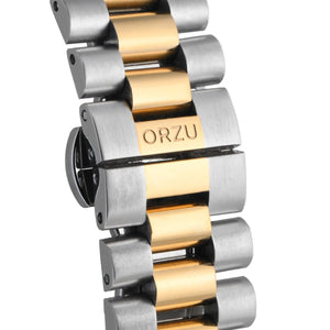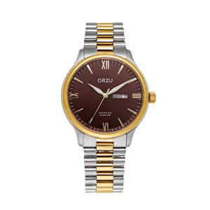 Classic meets contemporary in this ORZU men’s watch, featuring a rich brown round dial paired with a silver and gold stainless steel bracelet. Crafted with premium materials for lasting comfort and superior quality, it offers timeless elegance and versatile style—perfect for both refined daily wear and formal occasions.