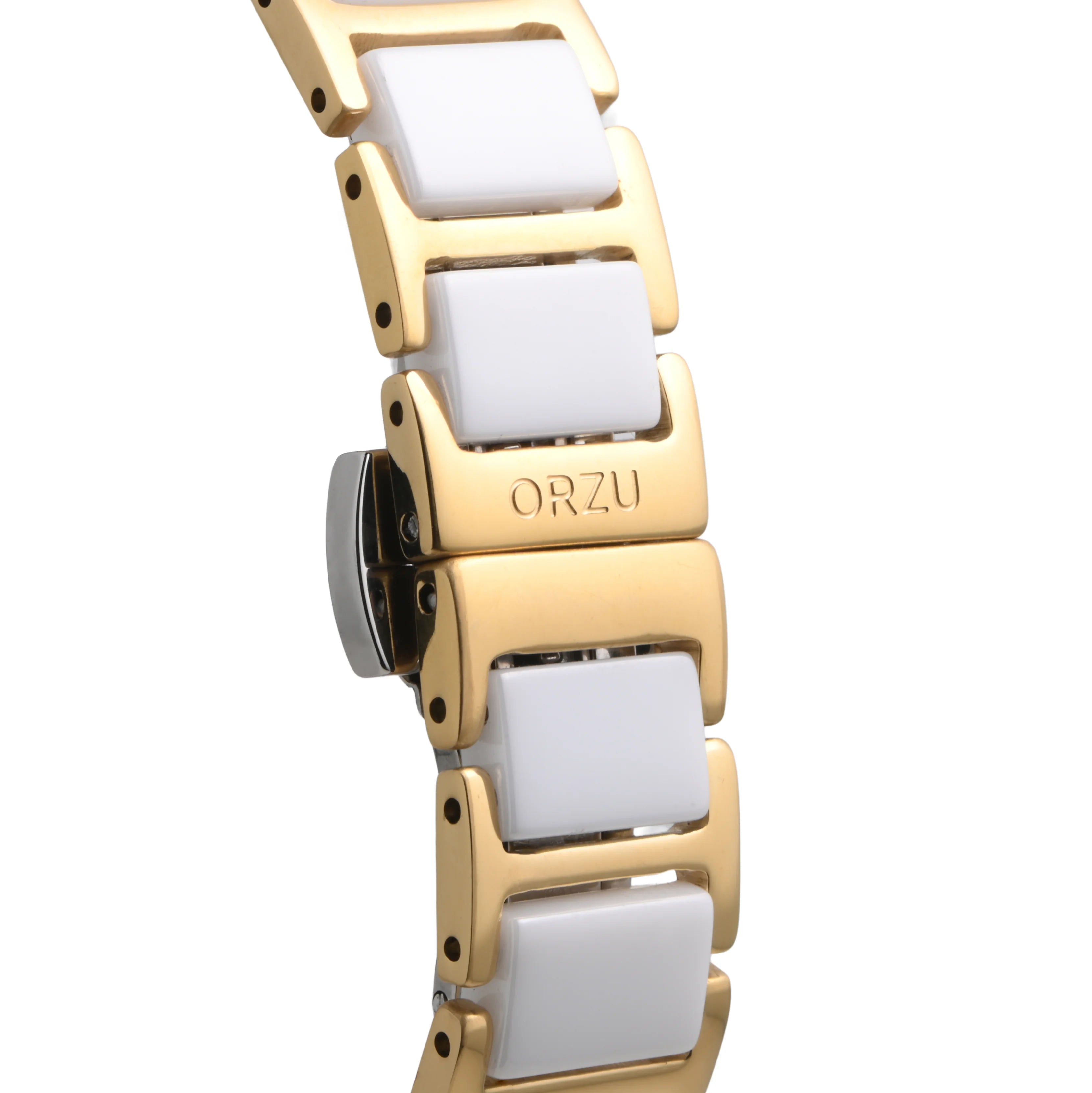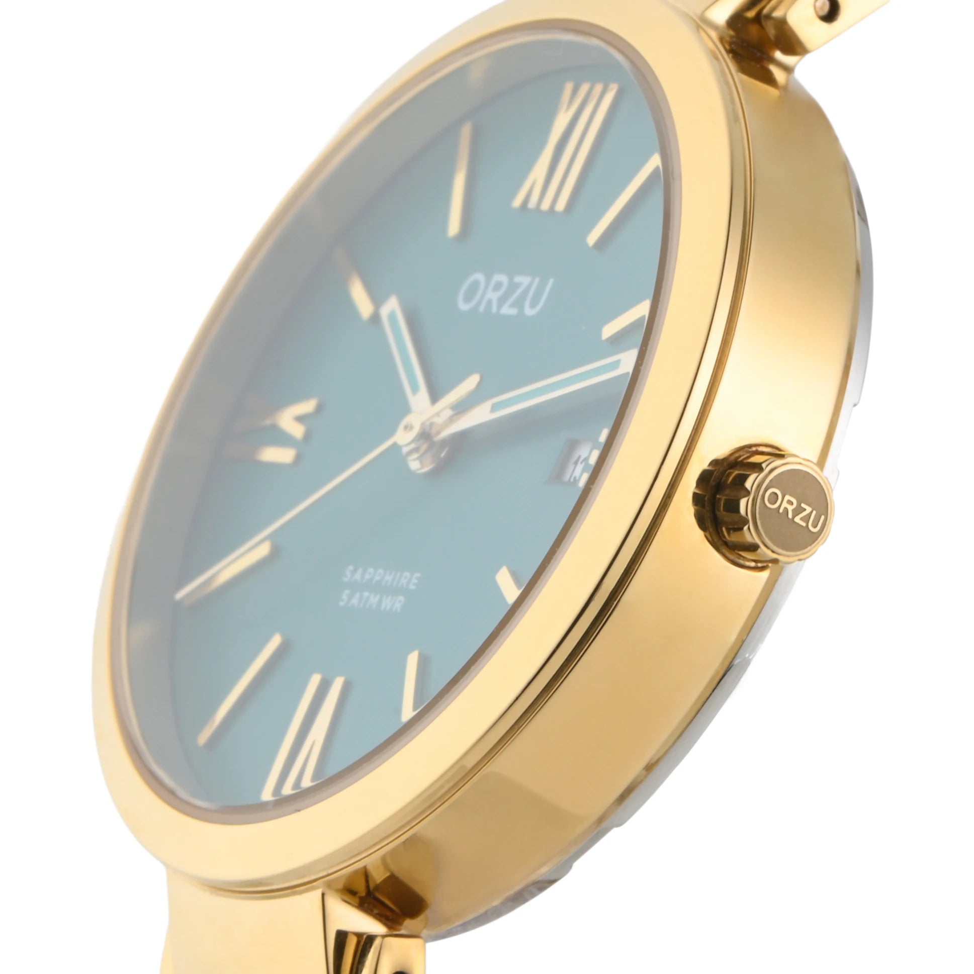 Radiate elegance with this ORZU women’s watch, featuring a striking blue round dial and a refined white and gold stainless steel bracelet. Crafted for enduring comfort and exceptional quality, it blends timeless style with modern sophistication—perfect for elevating both everyday looks and formal attire.