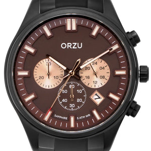 Sophisticated and bold, this ORZU men’s watch features a rich brown round dial paired with a sleek black stainless steel bracelet. Crafted with premium materials for lasting comfort and durability, it blends timeless style with modern elegance—an ideal accessory for both everyday wear and formal occasions.