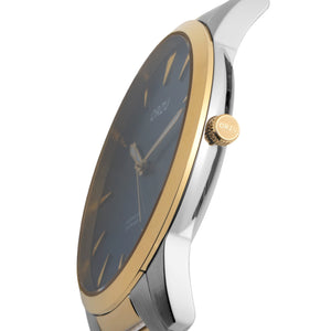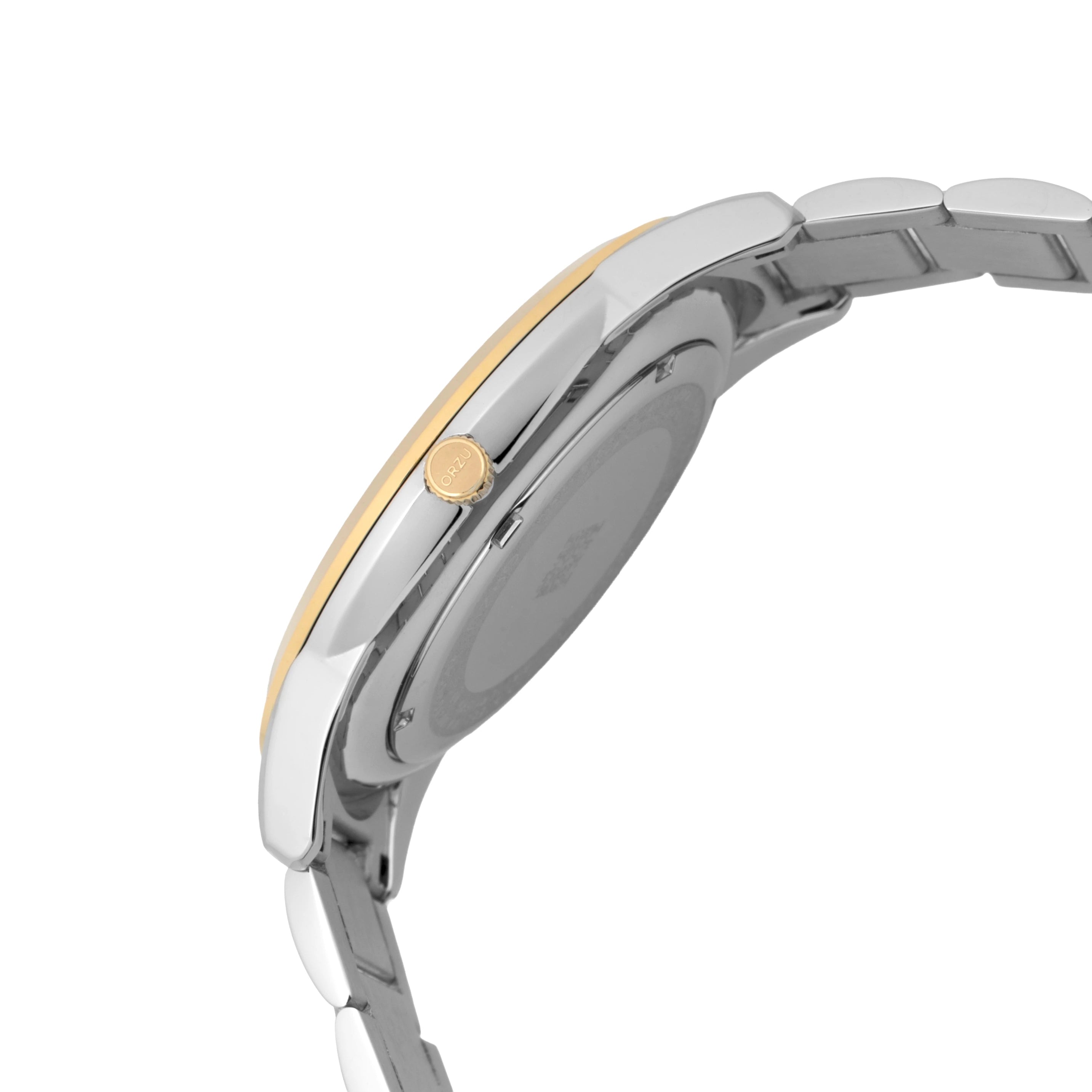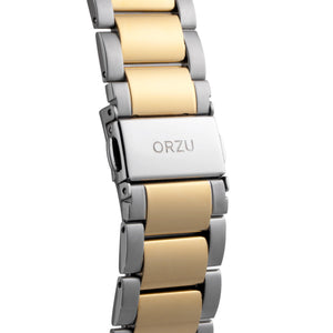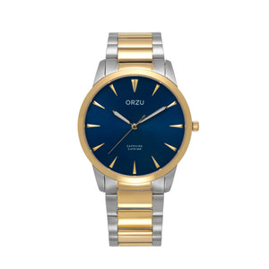 Striking and refined, this ORZU men’s watch features a bold blue round dial paired with a silver and gold stainless steel bracelet. Crafted for lasting comfort and exceptional quality, it blends timeless elegance with modern appeal—perfect for elevating everyday style or complementing formal looks.