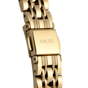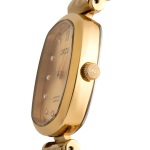 Radiant and luxurious, the ORZU women's watch features a gold stainless steel bracelet paired with a matching gold tonneau dial. Designed for lasting comfort and refined elegance, this timeless timepiece reflects ORZU’s dedication to superior quality—perfect for the woman who values graceful sophistication with a bold, modern finish.