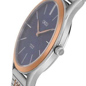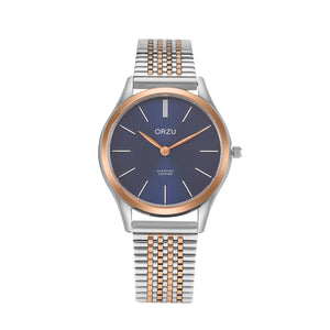 Refined and radiant, this ORZU women’s watch features a crisp blue round dial paired with a rose gold and silver stainless steel bracelet. Designed for lasting comfort and timeless elegance, it blends premium quality with graceful charm—perfect for elevating both everyday wear and formal ensembles.