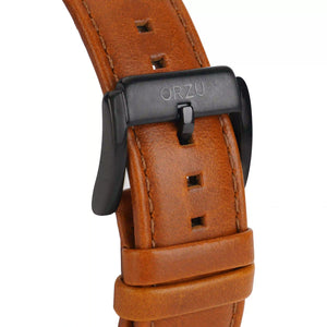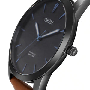 Classic and confident, this ORZU men’s watch features a sleek black round dial paired with a rich brown leather strap. Crafted with premium materials for lasting comfort and superior quality, it blends timeless elegance with modern appeal—making it a refined choice for both everyday wear and formal occasions.