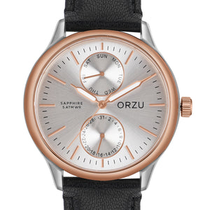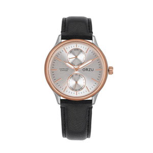 Timeless elegance meets modern design in the ORZU men's watch, featuring a smooth black leather strap and a crisp silver round dial. Crafted for all-day comfort and built with precision, this refined timepiece showcases ORZU’s commitment to superior quality and understated style—perfect for the gentleman who values sophistication.