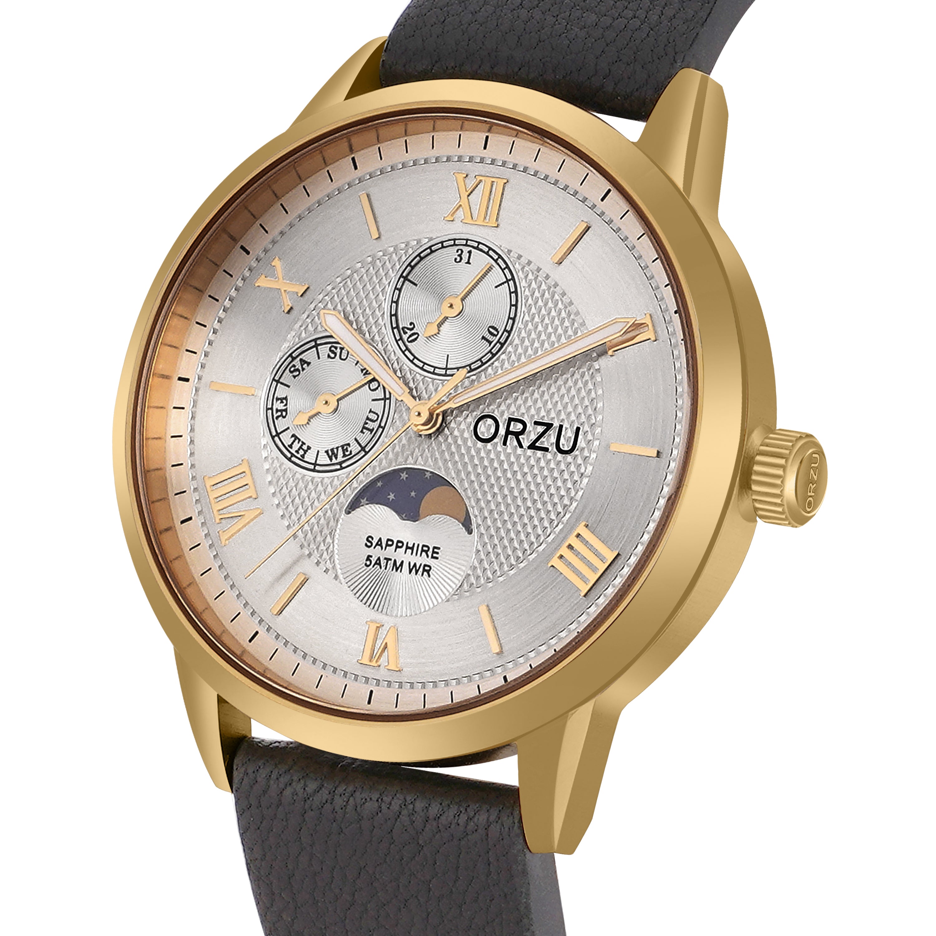 ORZU Multifunction Moon Phase Silver Dial Men's Watch