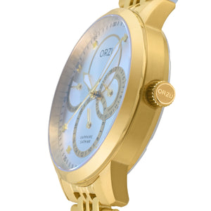 Bold and refined, the ORZU men's watch features a gold stainless steel bracelet paired with a sleek silver round dial. Designed for lasting comfort and timeless appeal, this sophisticated timepiece reflects ORZU’s commitment to superior quality—ideal for the man who values classic elegance with a confident, modern edge.