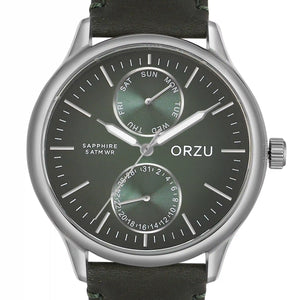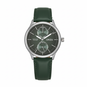 Distinctive and refined, this ORZU men’s watch features a rich green round dial paired with a smooth green leather strap. Crafted from premium materials for lasting comfort and exceptional quality, it blends timeless elegance with a bold modern edge—ideal for elevating everyday style or enhancing formal looks.