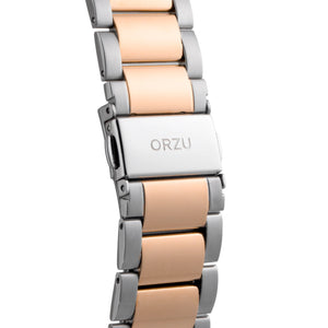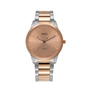 Elegant and eye-catching, this ORZU men’s watch features a refined rose gold round dial paired with a silver and rose gold stainless steel bracelet. Crafted with premium materials for lasting comfort and exceptional quality, it offers a timeless blend of sophistication and modern style—perfect for any occasion.