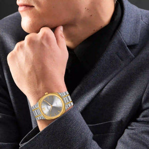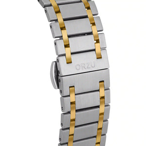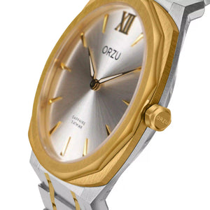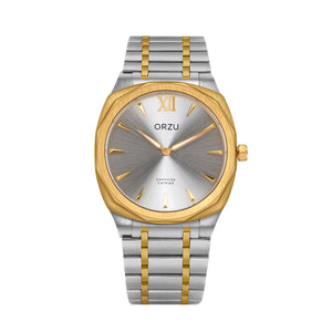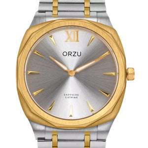 Refined and radiant, this ORZU men’s watch features a sleek silver round dial paired with a silver and gold stainless steel bracelet. Crafted with premium materials for lasting comfort and exceptional quality, it offers a timeless blend of elegance and versatility—perfect for both formal occasions and everyday wear.