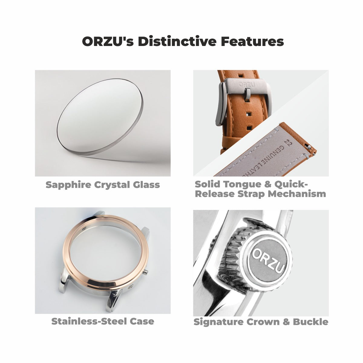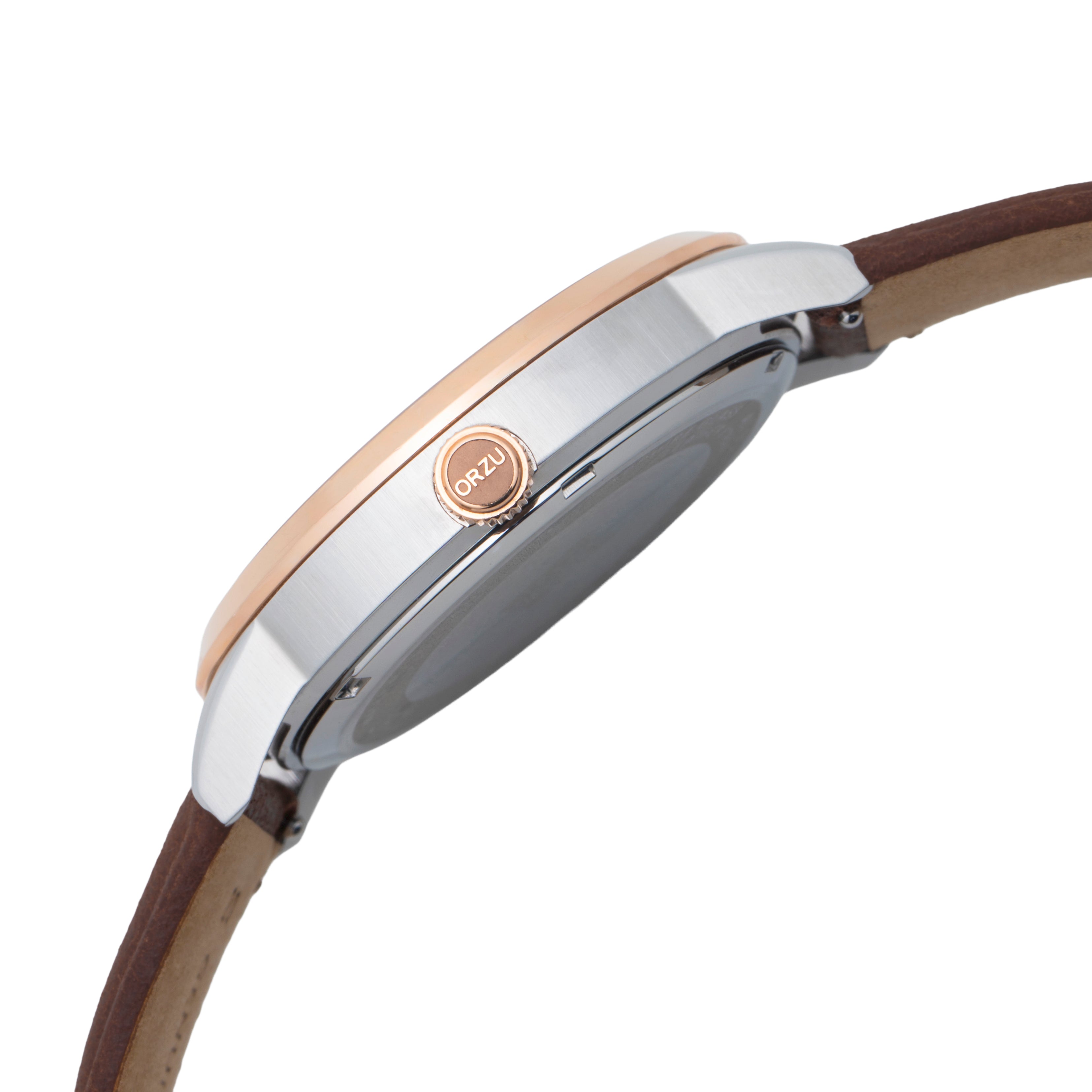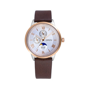 Classic charm meets modern craftsmanship in the ORZU men's watch, featuring a supple brown leather strap and a clean white round dial. Designed for all-day comfort and timeless appeal, this refined timepiece reflects ORZU’s dedication to superior quality and understated elegance—perfect for the gentleman who values style with substance.
