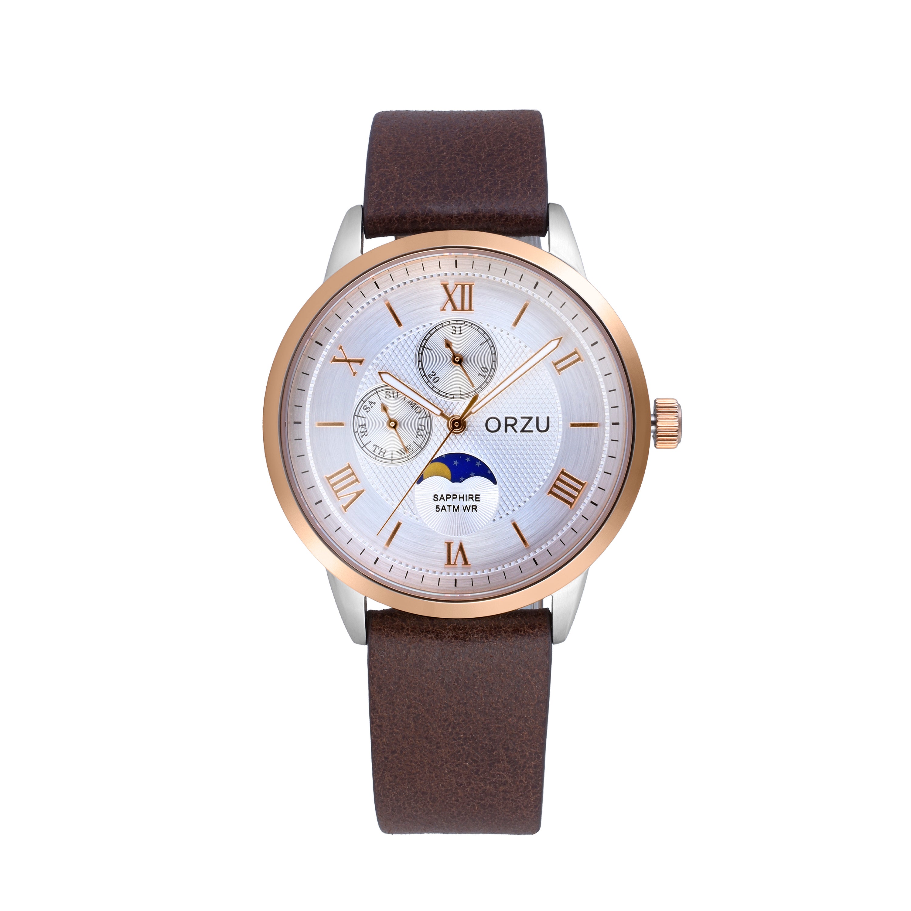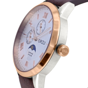 ORZU Multifunction Moon Phase White Dial Men's Watch