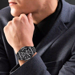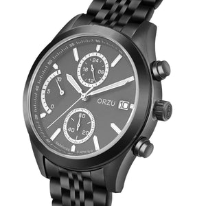 Refined and powerful, this ORZU men’s watch features a sleek black round dial paired with a robust black stainless steel bracelet. Designed for lasting comfort and crafted with premium materials, it delivers exceptional quality and timeless style—perfect for elevating both everyday looks and formal ensembles.