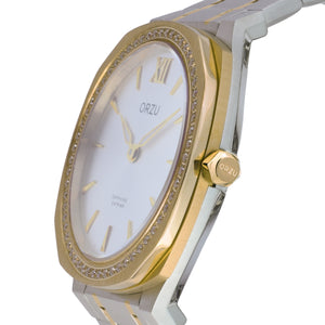 Radiant and refined, the ORZU women's watch features a rose gold and silver stainless steel bracelet paired with a sleek silver round dial. Designed for lasting comfort and timeless elegance, this sophisticated timepiece reflects ORZU’s dedication to premium quality—ideal for the woman who values graceful design with a modern, luxurious touch.