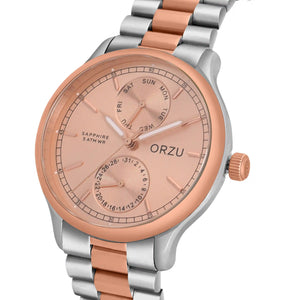 Elegant and distinctive, this ORZU men’s watch features a refined rose gold round dial paired with a silver and rose gold stainless steel bracelet. Crafted with premium materials for enduring comfort and exceptional quality, it offers timeless sophistication—perfect for both everyday style and formal occasions.